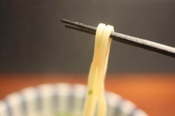 透明な膜でコーティングされたうどんの口あたりは、いと雅で、いと滑らか。