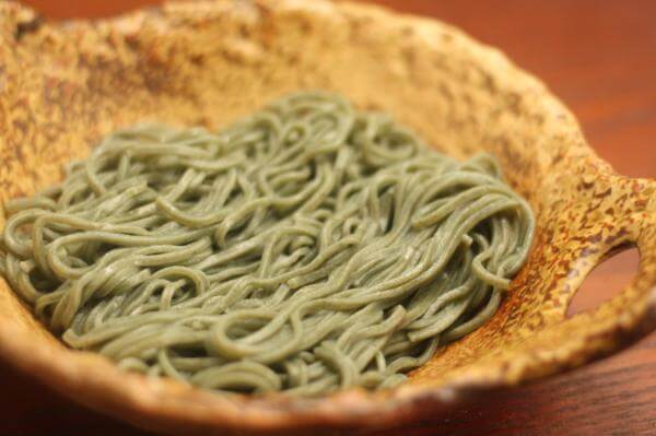 よもぎそばの角もぴんしゃんとたち、しっかりと景気よく痛快にすすりあげることができます。